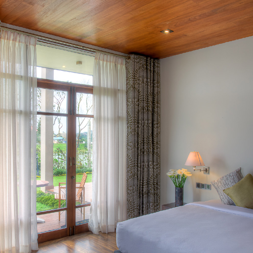 Enjoy the stylish wonder of Le Vallon, named after one of the first tea estates in the island. With a slanted timber roof, this room is very spacious and provides a commanding view of the lake from its balcony.